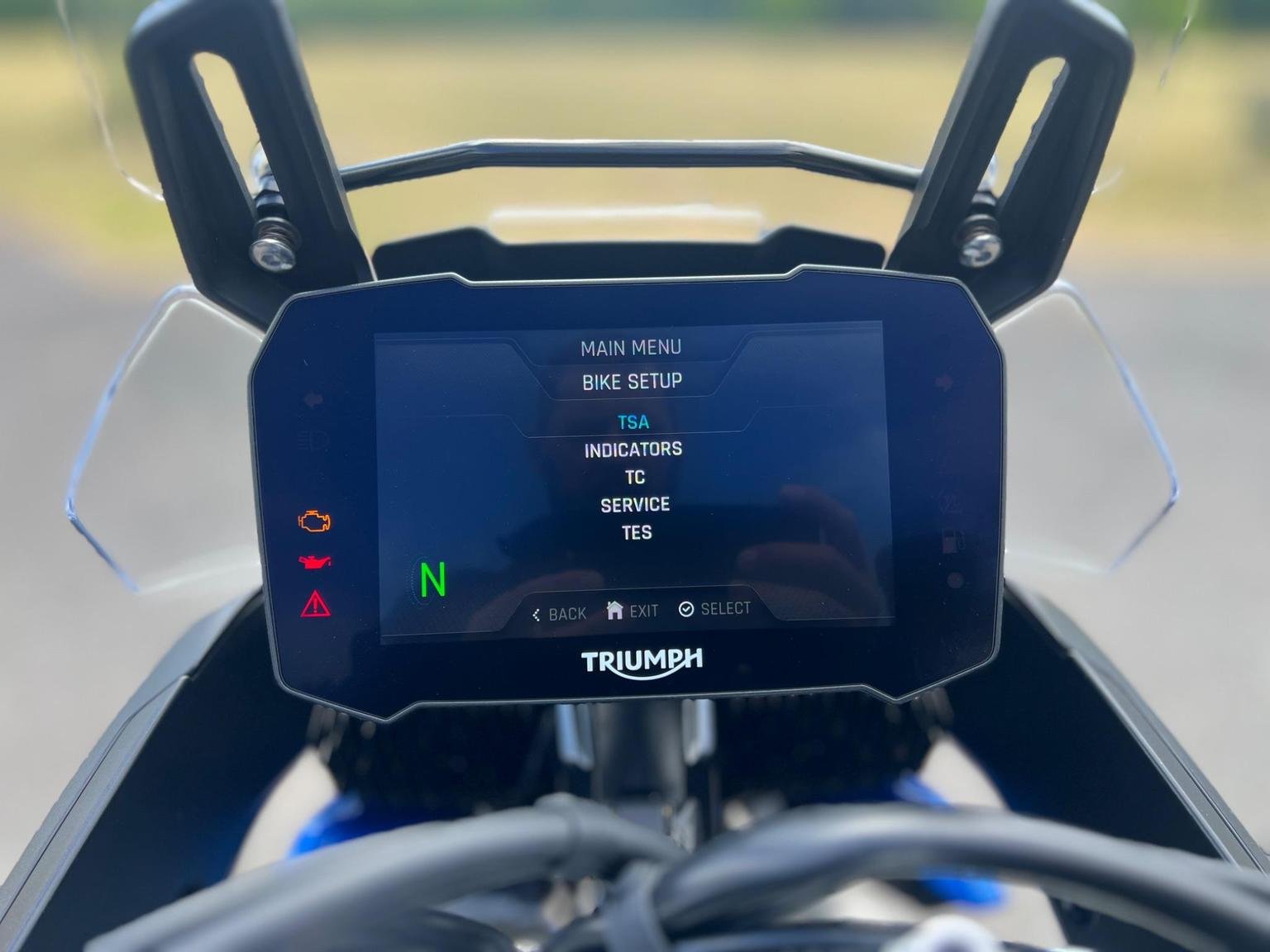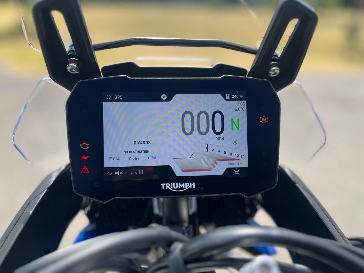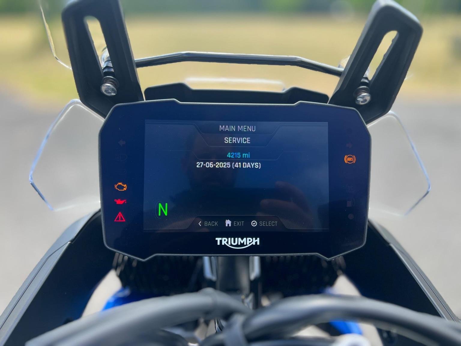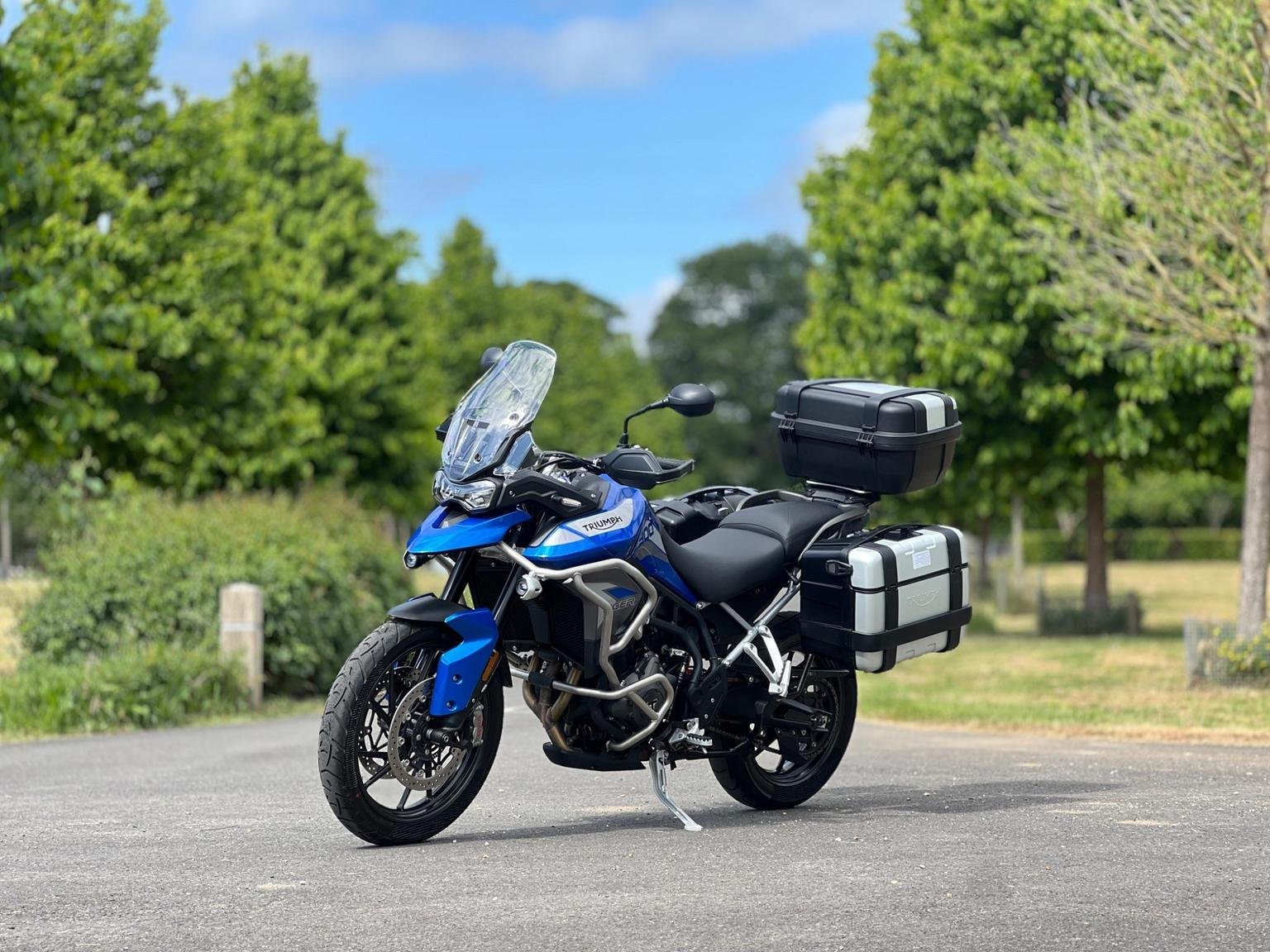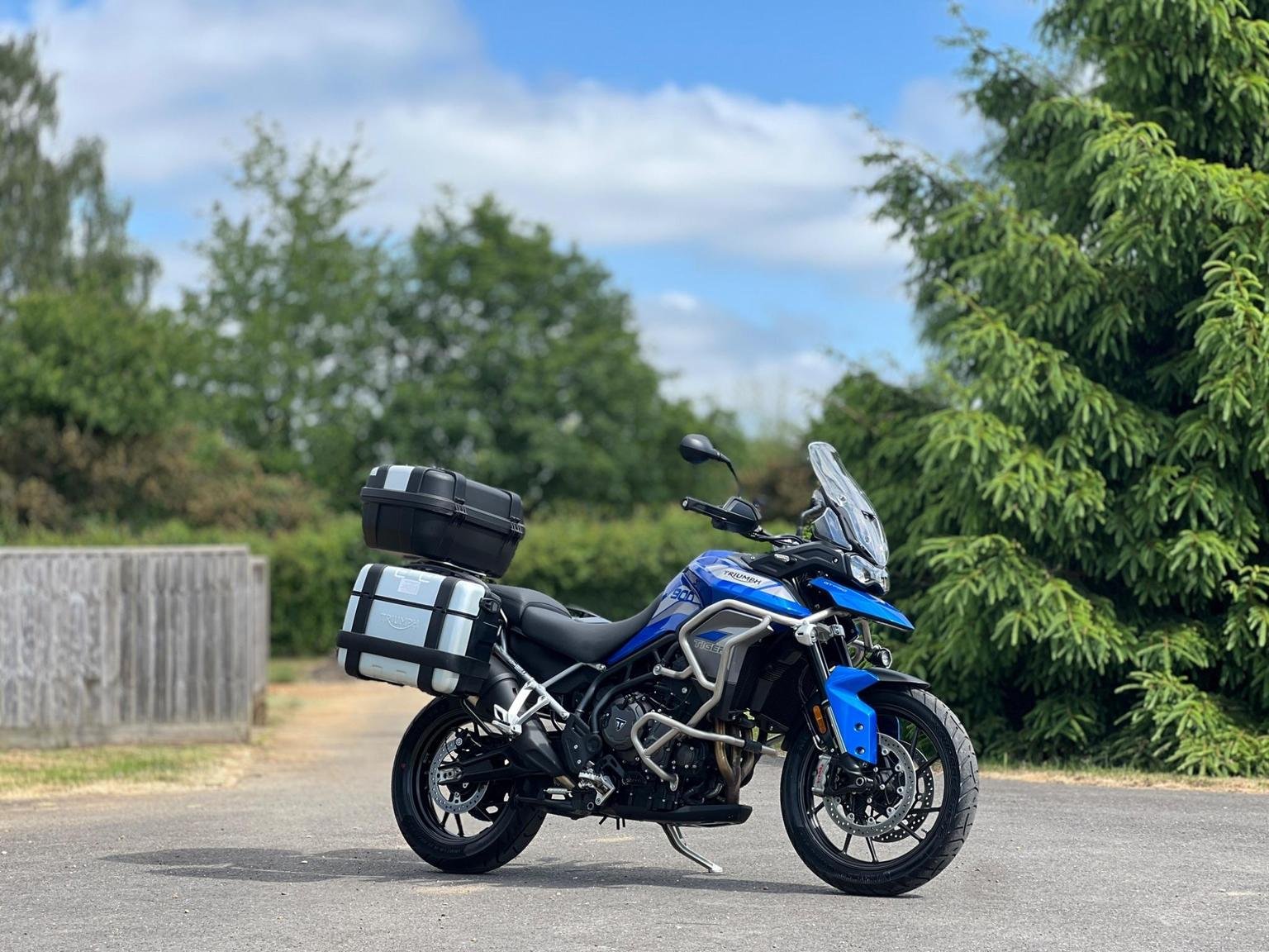 A rare opportunity here to own a "one owner" GT Pro Tiger in Caspian Blue. This bike has been brought from our locally Triumph Dealer to us and has been maintained by them too. It is a beautiful example and has been very regularly cared for but a local high end valet specialist too who is contracted to do all of our clients vehicles. This bike was brought as an additional bike to his collection and has only covered 1869 miles since purchasing in June 2023. Its has the TFT screen with Bluetooth but also the upgrades like Trekker Package at £1695 (luggage option with mounting kit) as well as frame covers with Tiger Eyes and even Datatag for insurance peace of mind! there is many this age in the market, grab yourself a great saving on new today. Call us today and book your appointment.