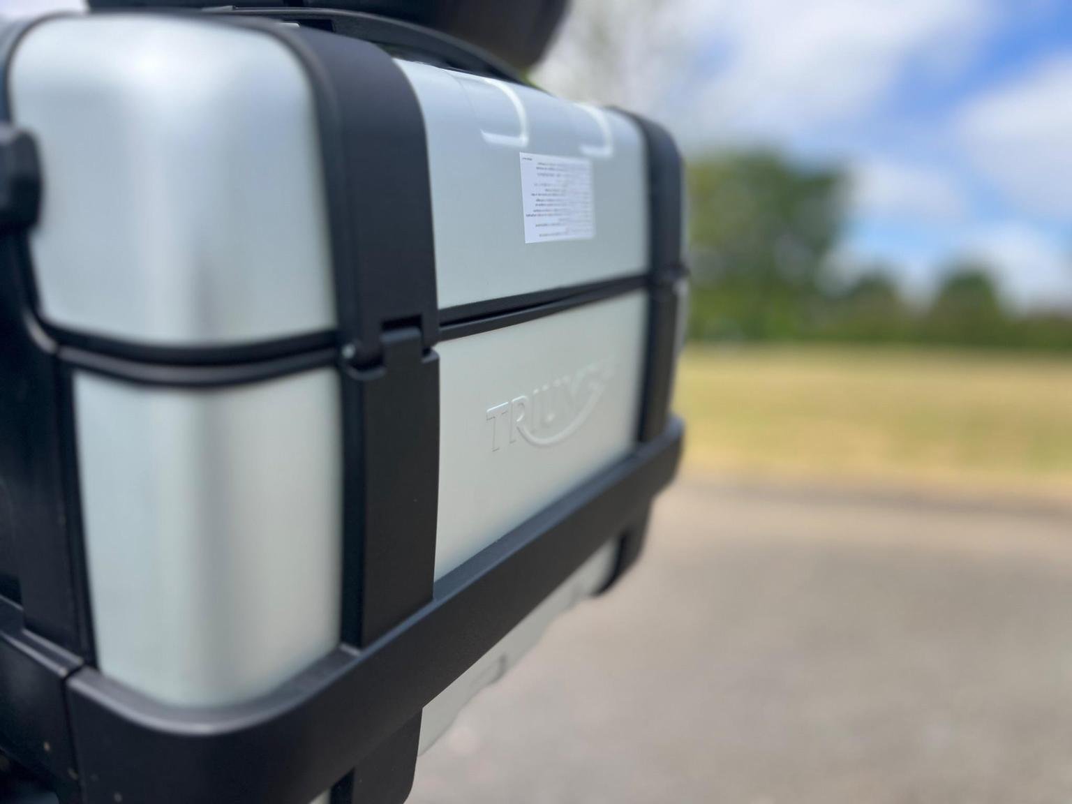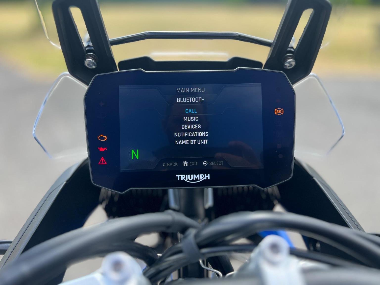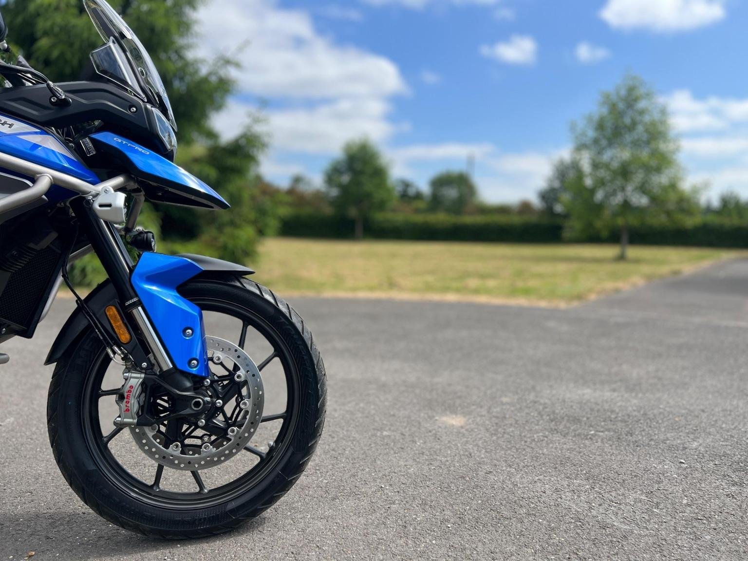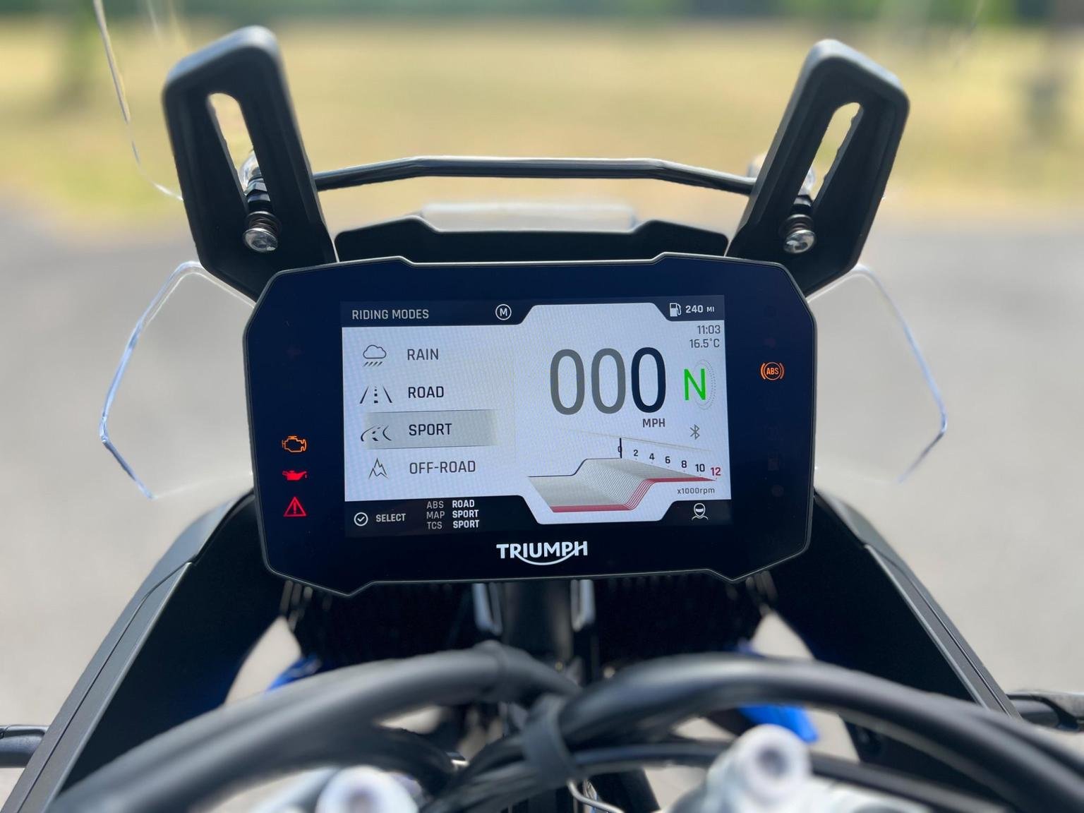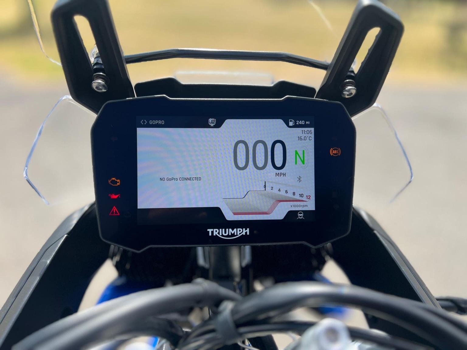 A rare opportunity here to own a "one owner" GT Pro Tiger in Caspian Blue. This bike has been brought from our locally Triumph Dealer to us and has been maintained by them too. It is a beautiful example and has been very regularly cared for but a local high end valet specialist too who is contracted to do all of our clients vehicles. This bike was brought as an additional bike to his collection and has only covered 1869 miles since purchasing in June 2023. Its has the TFT screen with Bluetooth but also the upgrades like Trekker Package at £1695 (luggage option with mounting kit) as well as frame covers with Tiger Eyes and even Datatag for insurance peace of mind! there is many this age in the market, grab yourself a great saving on new today. Call us today and book your appointment.